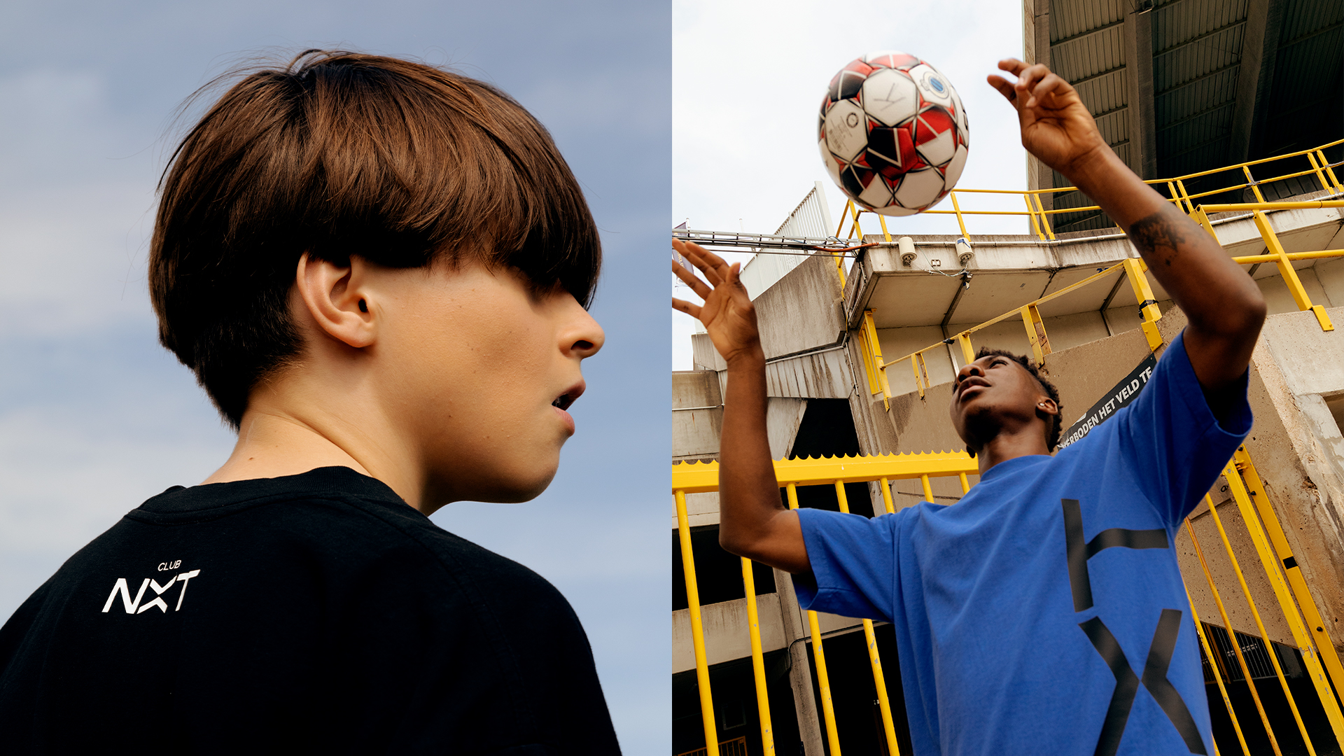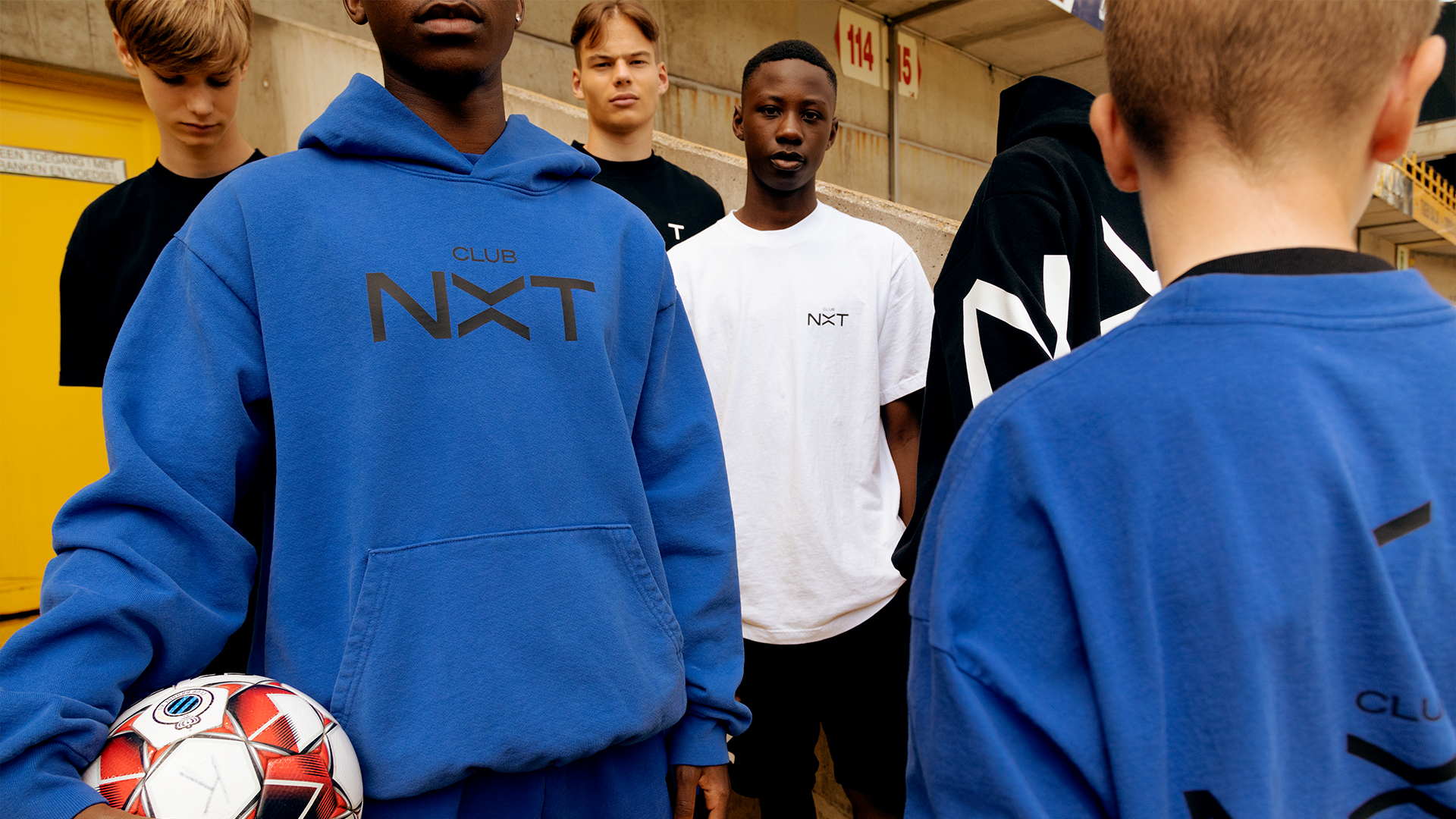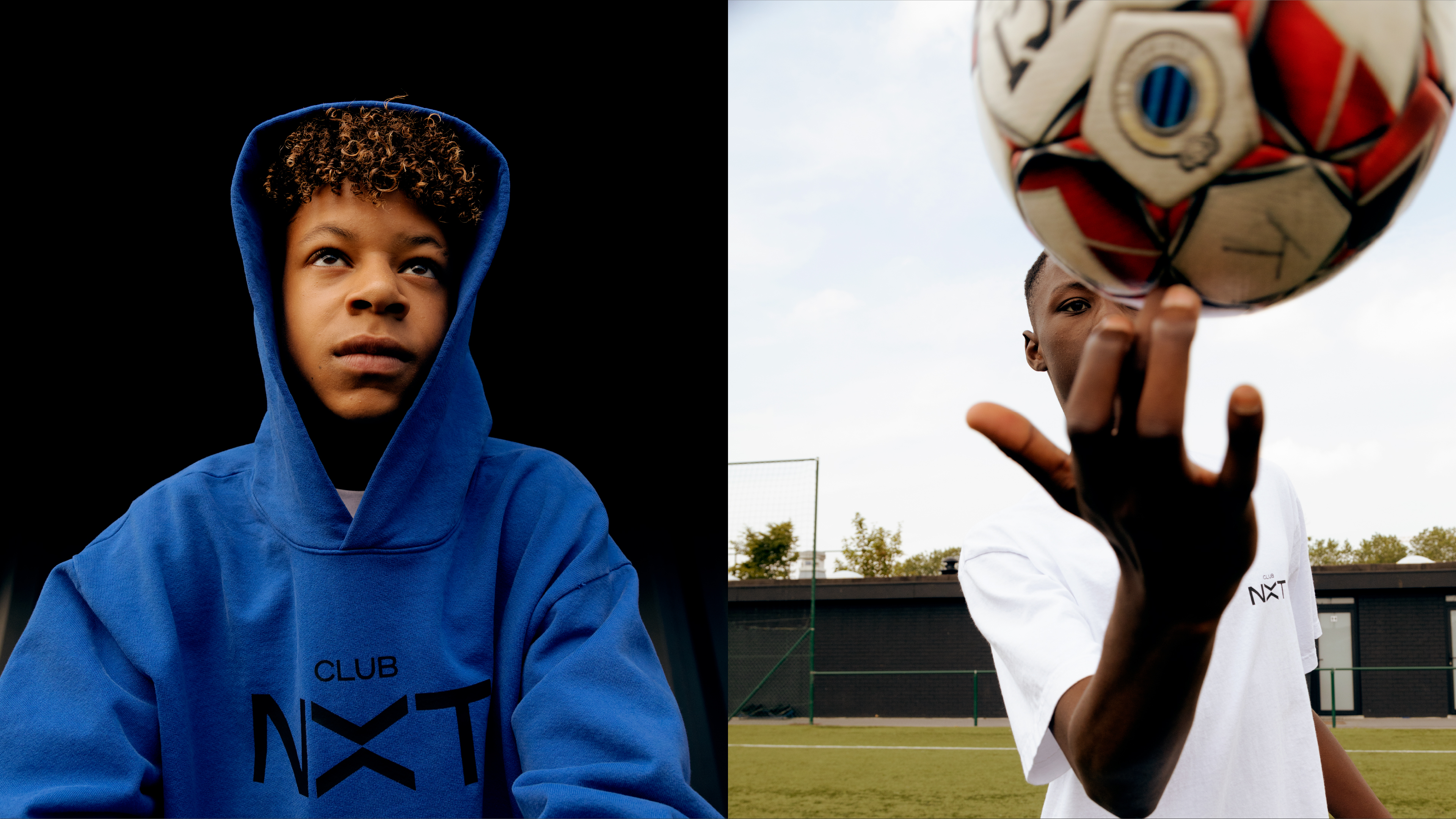 Working with brand architect Ludovic Beun, stylist Kate Housh and photographer Stig de Block, we defined a look and feel with a fashion/lifestyle edge. The models for photo shoots and videos are all CLUB NXT players; the authenticity of this approach gives the brand a tangible frisson. The CLUB NXT logo is powerful in its simplicity, with two dynamic chevrons meeting to create a distinctive, own-able ‘X’. The typeface – Söhne Breit, designed by Klim Type Foundry – is a key component in the identity, achieving clarity and confidence across all communications.