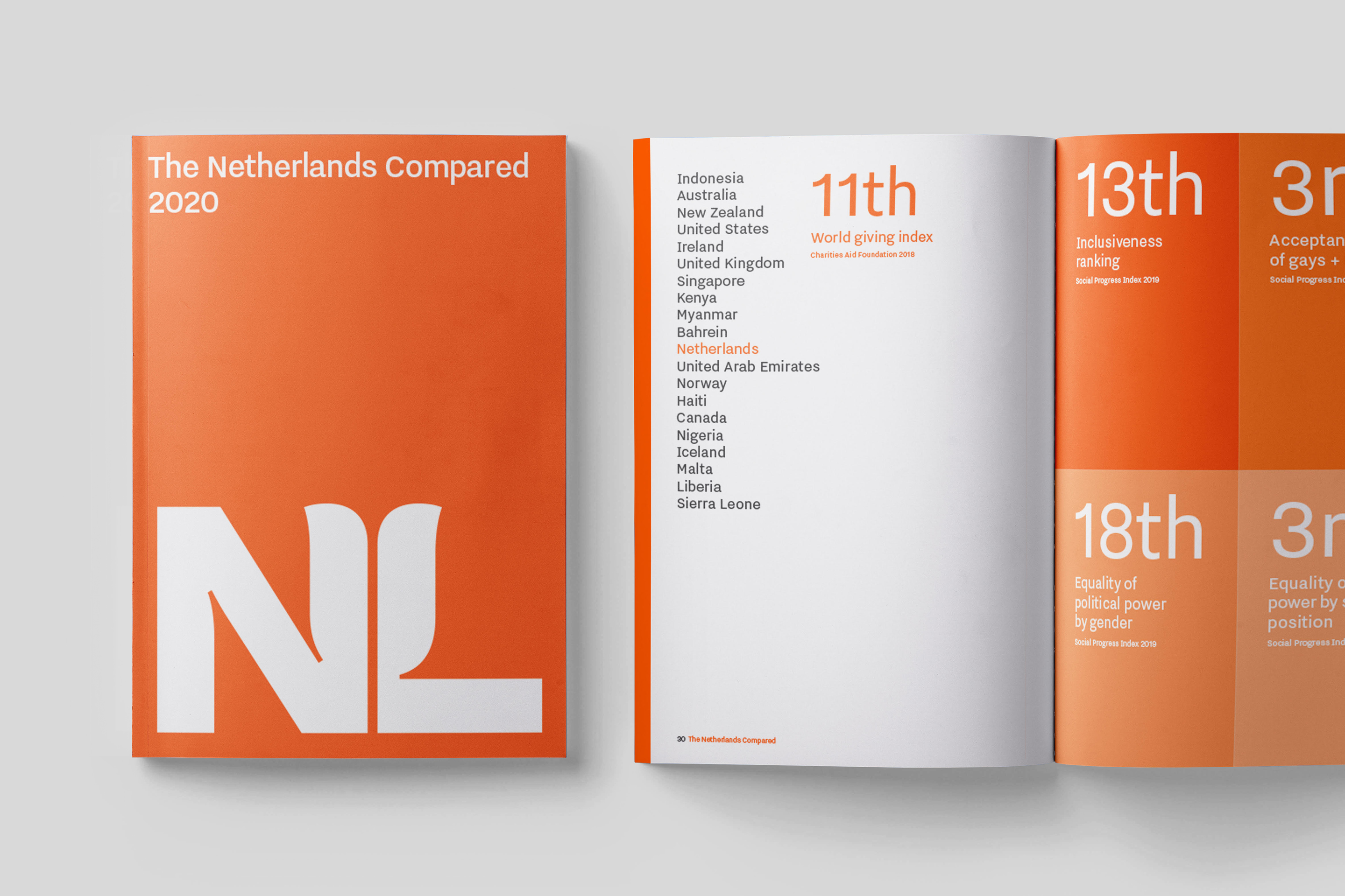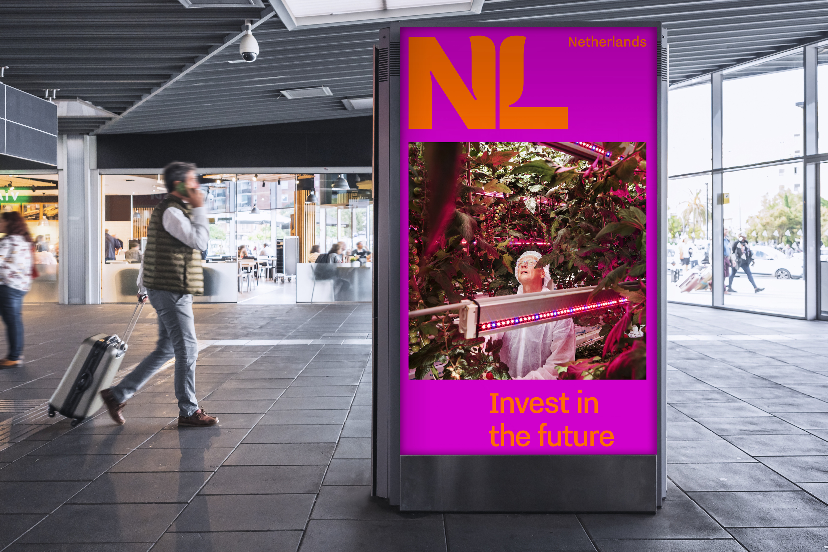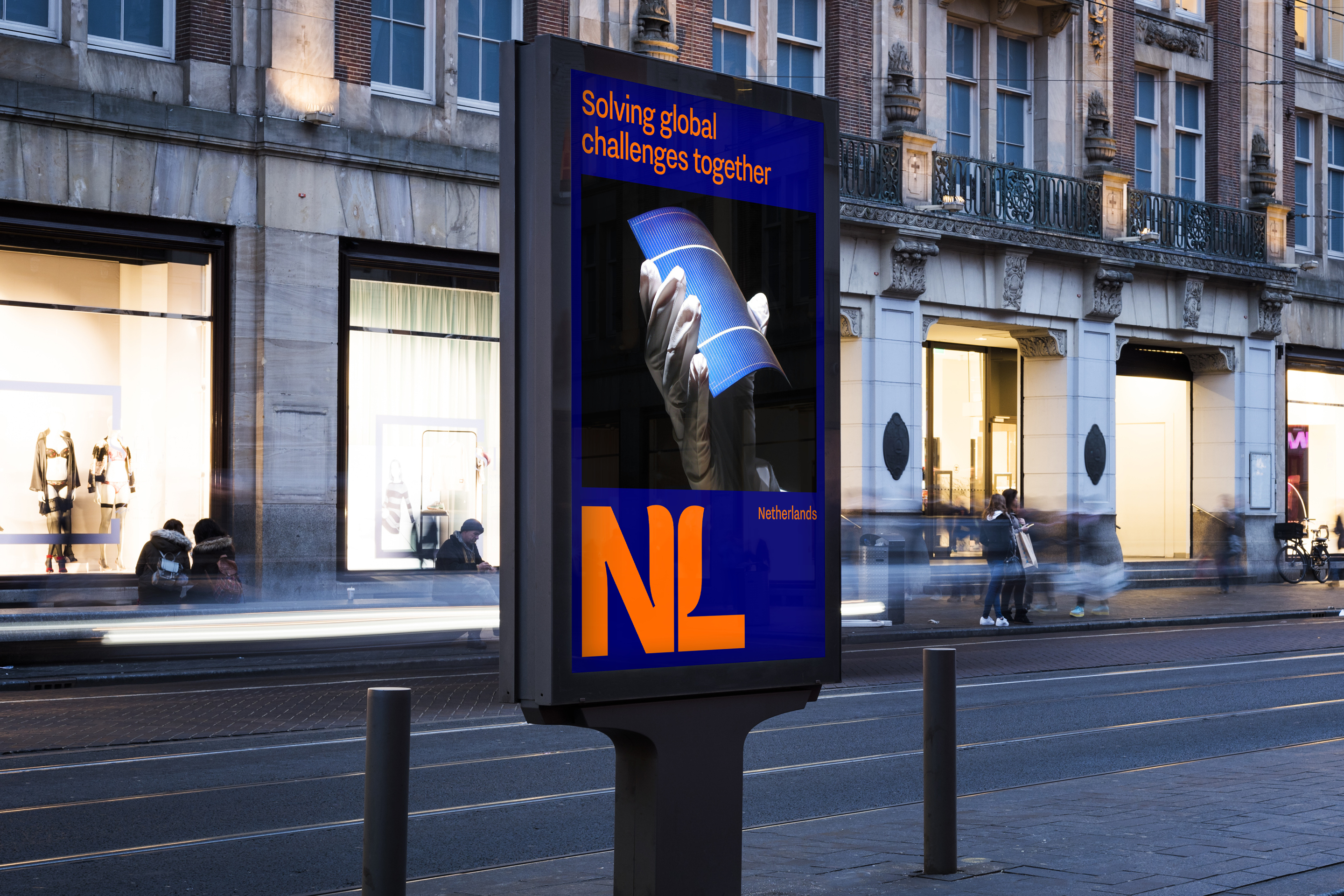 Simplicity, clarity and power. The new design draws on a well-known trinity: the colour orange, the tulip, and the NL acronym. All three are quintessentially Dutch, evoking an image that international audiences can recognise, while expressing qualities close to the hearts of the Dutch people. Based on the typeface Nitti Grotesk (created by independent Dutch type foundry Bold Monday), the NL logo – with its subtle reference to tulip petals – and accompanying logotype express a modern attitude, whilst communicating their message with absolute clarity.