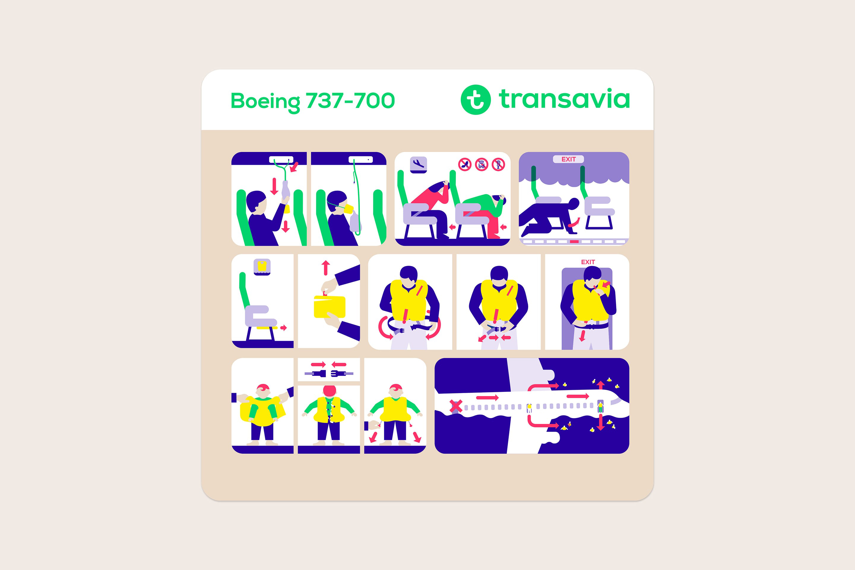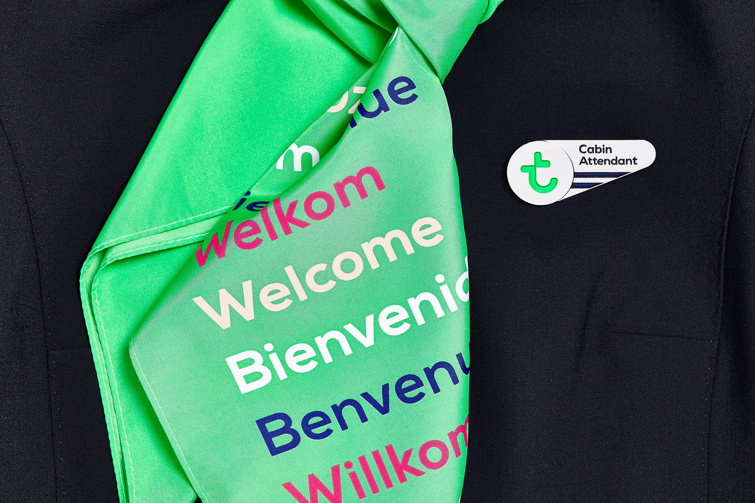 The identity is very easy to work with – there are no complicated guidelines. Playful, accessible and flexible, the design is built around a system of graphic tiles (in various shapes and sizes), which contain words, icons, prices and other information. The tiles were combined with four colours and hundreds of custom-designed icons that are easily applied to all touchpoints – from websites, mobile phone screens and packets of sugar for your in-flight coffee, to billboards and airplanes. The results are always Transavia. A special feature is the application of icons to the underbellies of their planes, with a different combination of icons for each plane in the fleet. Another symbolic livery feature appears next to the cabin door, where the word ‘Welcome’ is written in all the languages of the countries served by Transavia.